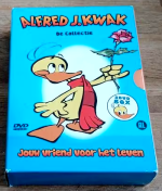 "Alfred J. Kwak - Jouw vriend voor het leven" (lit. 'Alfred J. Kwak - Your friend for life') is a DVD series covering all 52 episode of the animated series in Dutch. The episode are not presented in chronological order, but instead collected on themed DVDs, with all DVDs containing 3 episodes, except for Veiligheid & Gezondheid 3 (lit. "Safety & health"), which contains 4. While most storyarcs remain intact, some are divided over 2 of the DVDs. All volumes include unique artwork made by Harald Siepermann. This was release almost simultaneously with the Alfred J. Kwak - Dein Freund für's Leben DVD collection.