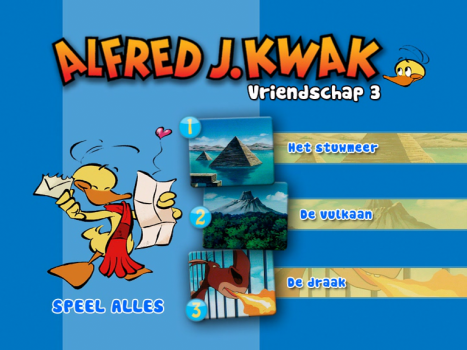 Alfred J. kwak - Vriendschap 3 (lit: Alfred J. Kwak - Friendship 3) is a DVD that was released in 11 October 2007 as part of the third wave of DVDs of the Alfred J. Kwak - Jouw vriend voor het leven series. It contains episodes 40, 41 and 42 of the animated series. The DVD features no subtitles, no alternative audio tracks and no special features. It was also sold together in the 3 DVD collection set Vriendschap - 3 DVD BOX.